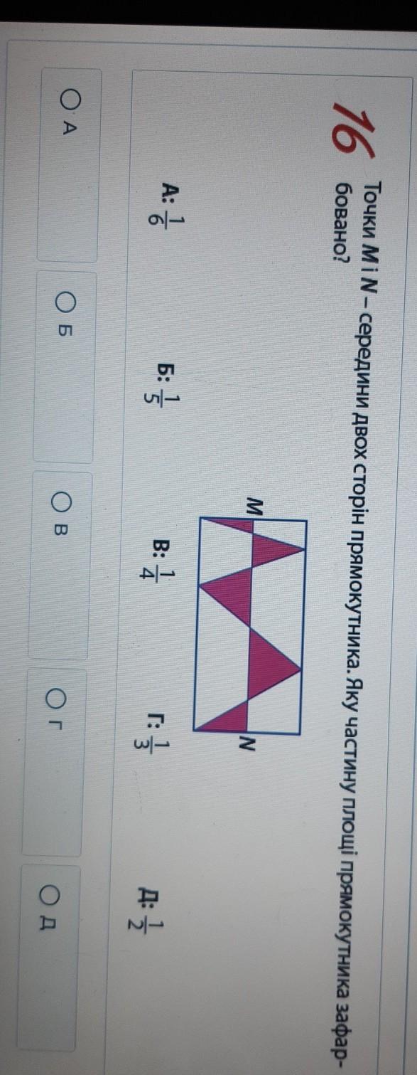 точки M і N середини двох сторін прямокутника яку частину площі прямокутника зафарбовано