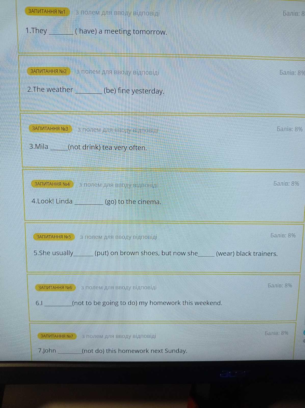 Write only the forms of the verbs, not sentences!!!! Use short forms of the verbs(like isn’t, didn’t, won’t)