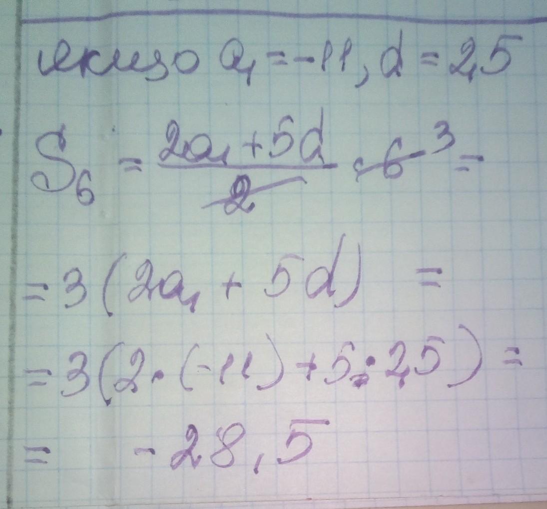 5. Знайдіть суму перших шести членів арифметичної прогресії (an) a1= - 11, d = 2, 5 А. 29. Б. -30. В. -28,5. Г. -31,5.