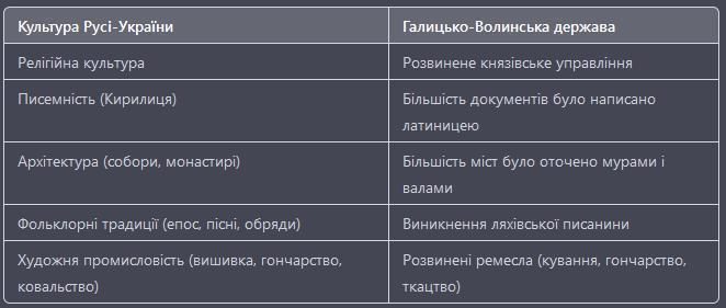 4. Визначте відмінності культури Київської Русі та Галицько-Волинського князівства.