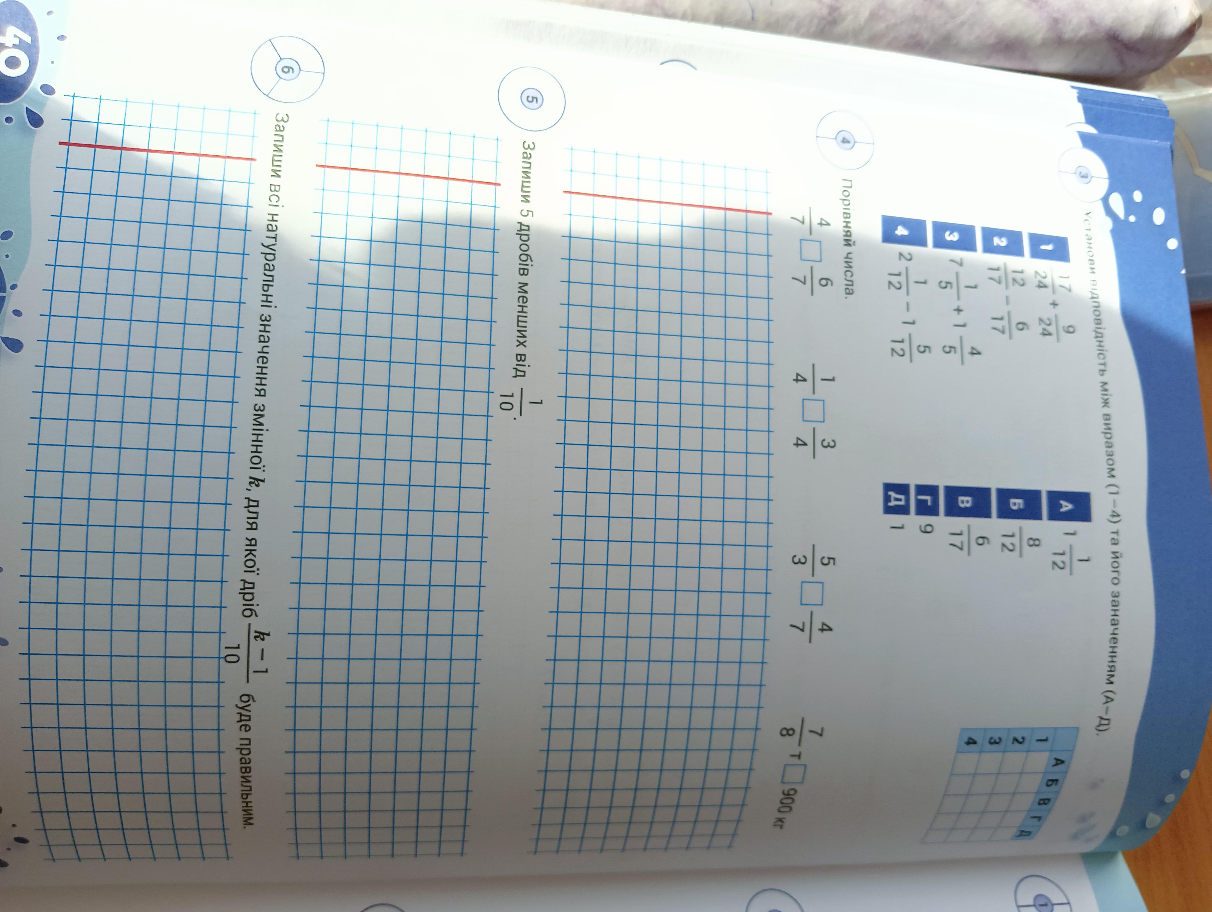 4/7≤6/7 1/4≤3/4 5/3≥4/7