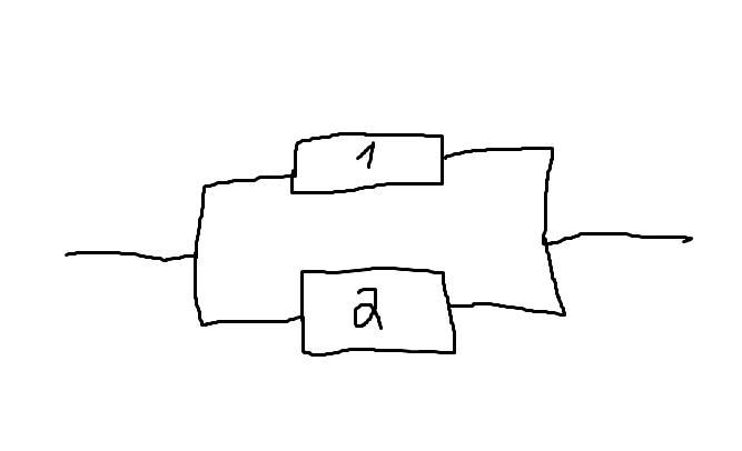 7. Накресліть схему паралельного з'єднання двох резисторів з опорами 1 Ом i 2 Ом. На якому напруга більша?