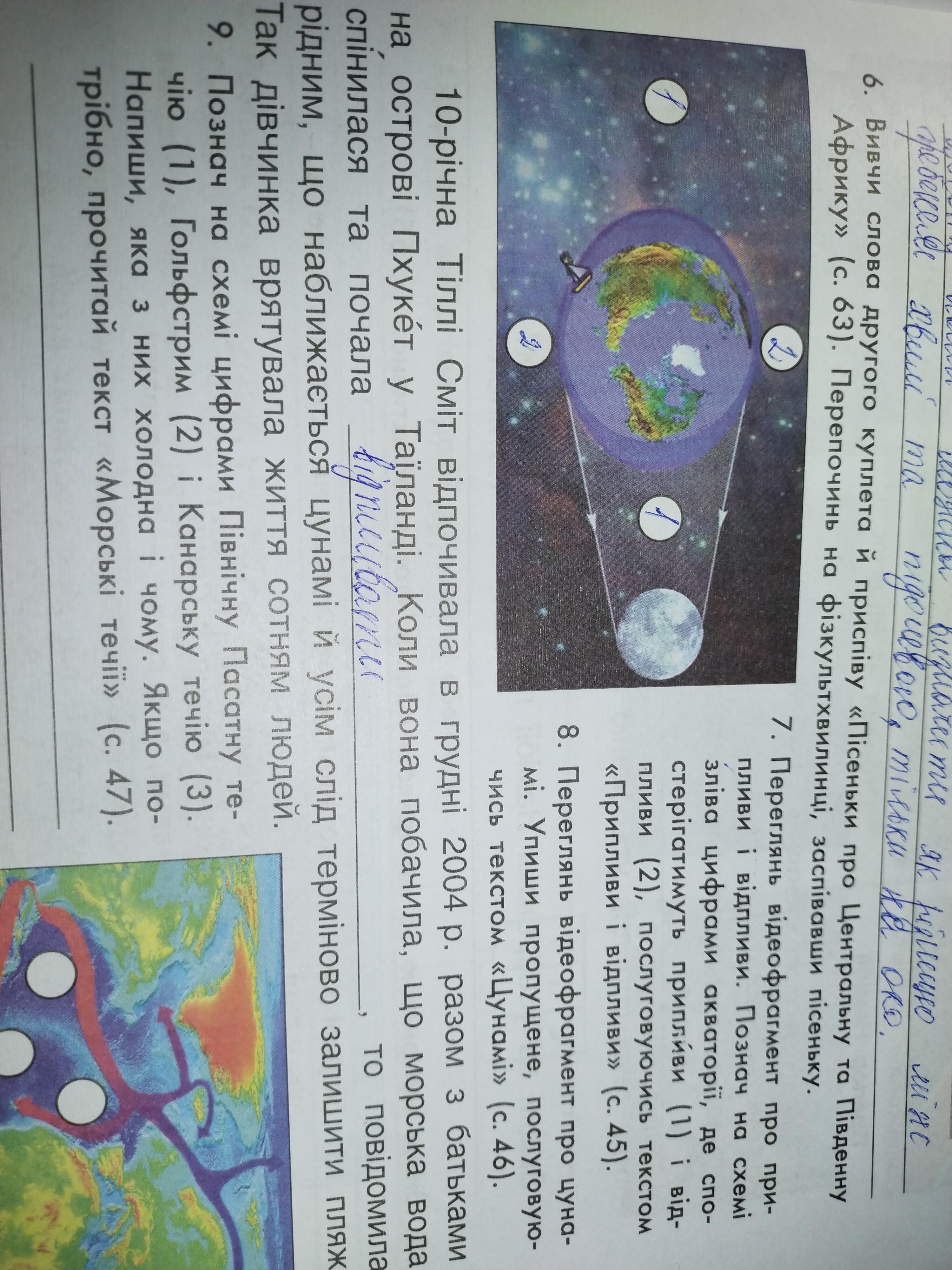 8. Переглянь відеофрагмент про цуна- мі. Упиши пропущене, послуговую- чись текстом «Цунамо» (с. 46).
