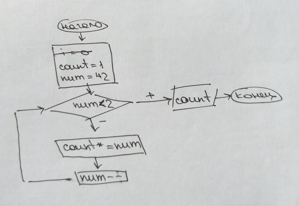 переменную num, в которой будет перебор числе от 42 до 2 в цикле while