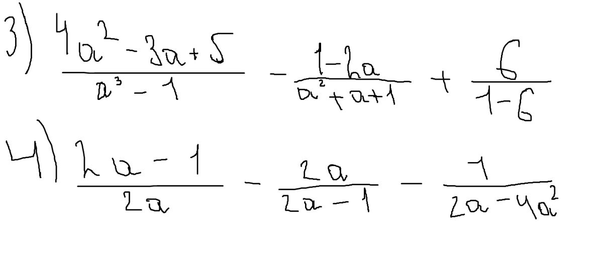 frac{4a^2-3a+5}{a^3-1}-frac{1-2a}{a^2+a+1}+frac{6}{1-6}\