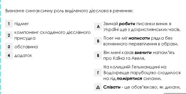 Відповідь: 1 - д, 2 - б, 3 - г, 4 - в