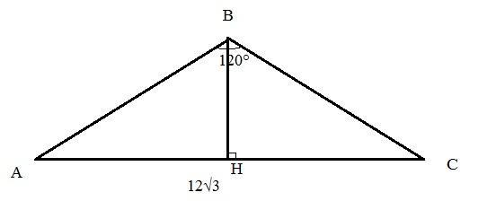 Пусть △АВС - р/б, ∠В=120°, АС=12√3 см, ВН - высота.