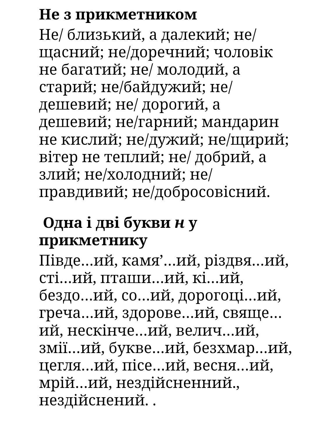 не близький, а далекий; нещасний: недалекий; недоречний; чоловік небагатий; не молодий, а старий; небайдужий; недешевий; не дорогий, а дешевий; негарний; мандарин не кислий; недужий; нещирий; вітер не теплий; не добрий, а злий; не холодний; неправдивий; недобросовісний.