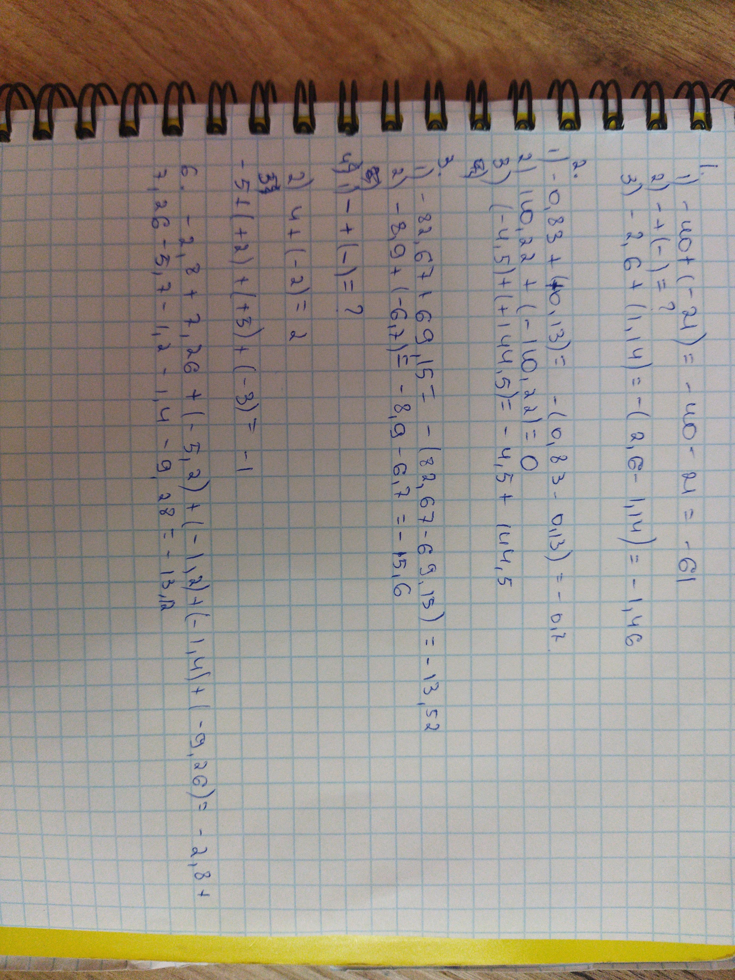 1)-40+(-21)= 2)- +(- )=