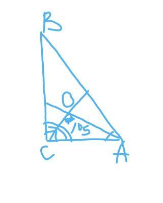Один з кутів, утворених при перетині бісектрис прямого і гострого кутів трикутника, дорівнює 105°. Знайдіть гострі кути цього трикутника.