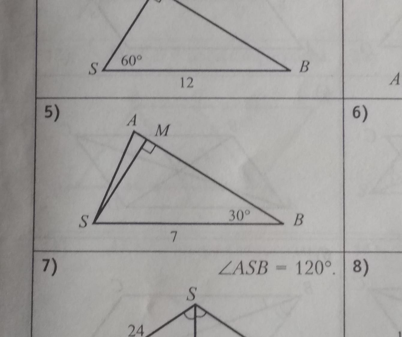 так как треугольник SMB прямоугольной то SM=7:2=3,5по свойству катета лежащего против угла в 30°
