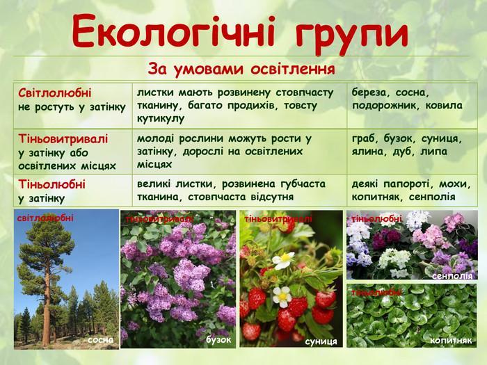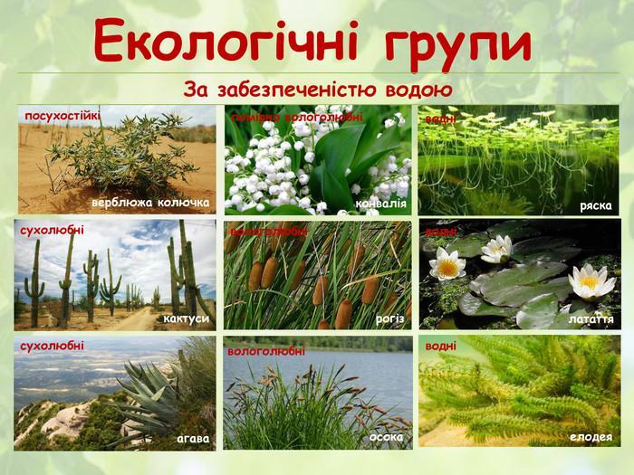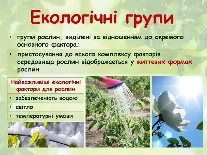 Екологічна група — сукупність видів, що характеризується подібними потребами у величині будь-якого екологічного чинника і виникли в результаті його дії в процесі еволюції подібними анатомо-морфологічними та іншими ознаками, що закріпилися в генотипі.