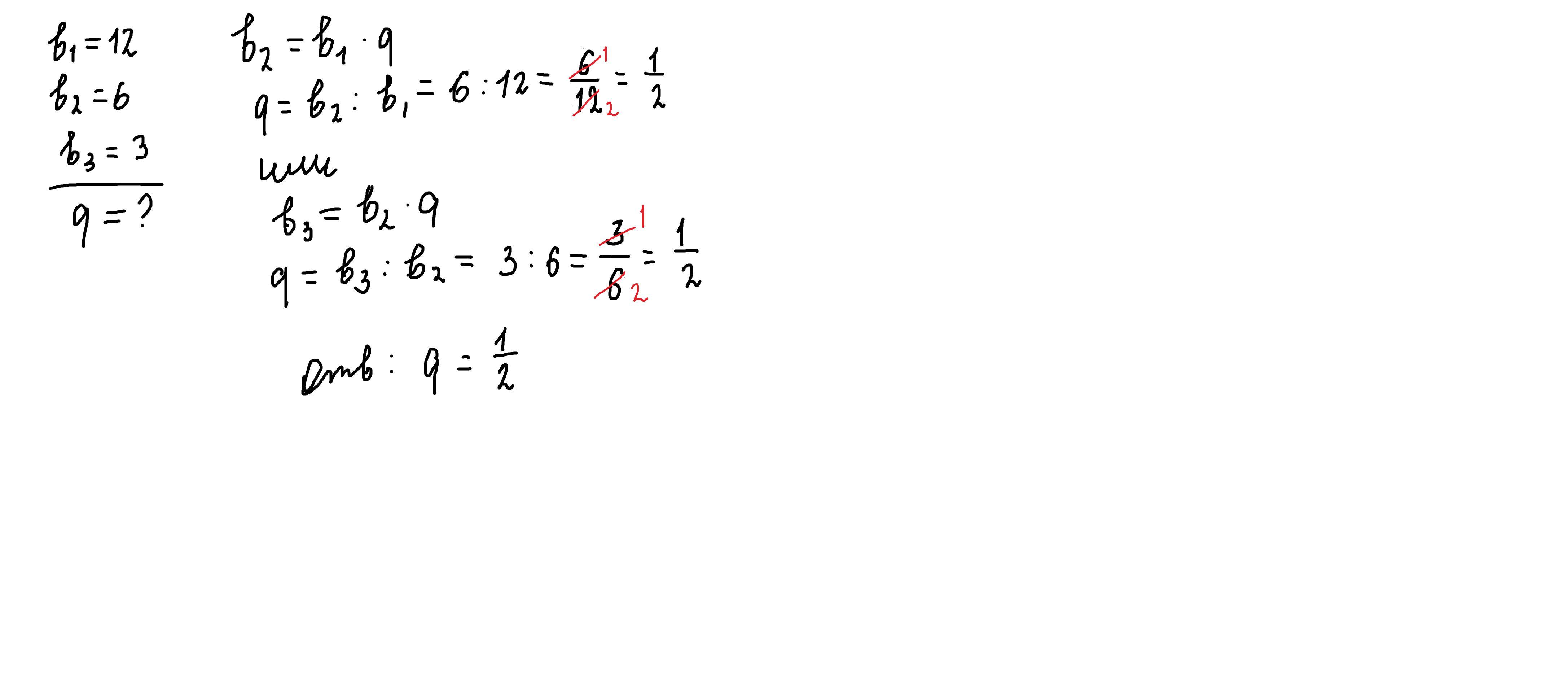 в геом. прогрессии каждый следующий член получается путем умножения предыдущего на одно и тоже число(знаменатель прогрессии q)