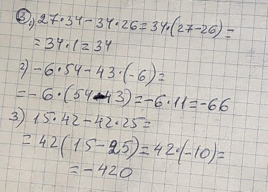 27 * 34 - 34 * 26 = 34 * (27 - 26) = 34 * 1 = 34