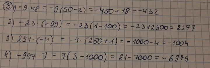 1) –9 ∙ 48; 2) –23 ∙ (–99); 3) 251 ∙ (–4); 4) –997 ∙ 7.