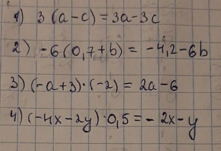 3) (–а + 3) ∙ (–2); 4) (–4x – 2y) ∙ 0,5.
