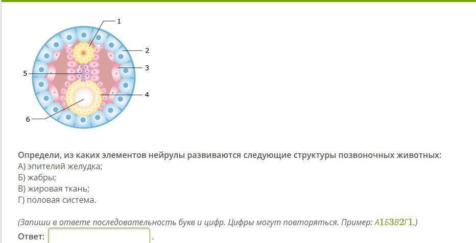Запомни поговорку- Мезодерма-кости, мышцы, почки, кровь Эктодерма-кожа, нервы, органы чувств Энтодерма-прочее. Цифрами обозначены последовательно (1,2,3..)нервная трубка (эктодерма), эктодерма, мезодерма, энтодерма, хорда (мезодерма) Ответ-2233