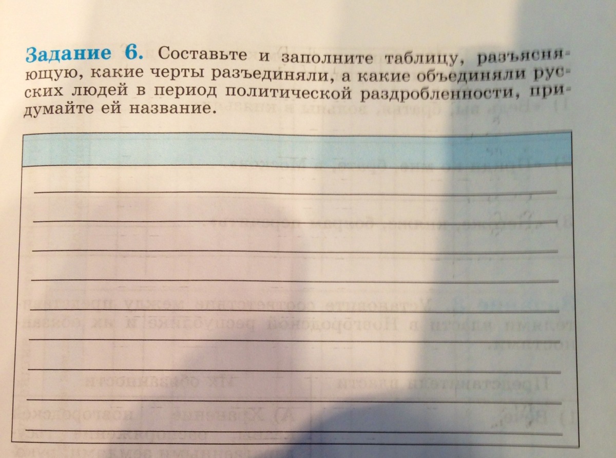 Составьте и заполните таблицу, разъясняющую, какие черты разъединяли, а какие объединяли русских людей в период политической раздроленности, придумайте ей название.