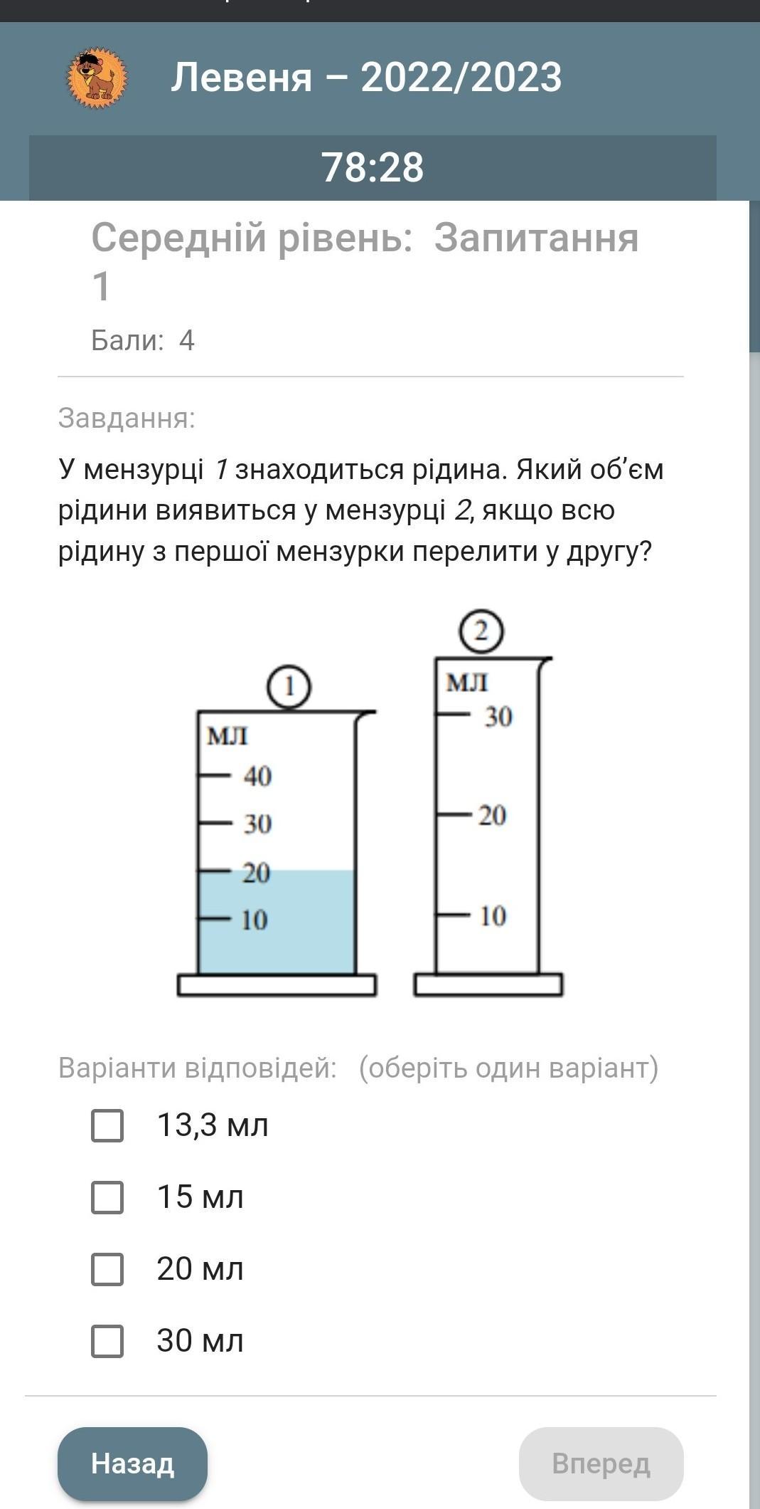 не имеет разницы какая посуда, деление на 20 значит в мензурке 20 мл жидкости, и при переливе (если без потерь) останется столько же. опять же, не учитывая цену деления и погрешность измерения у разных приборов
