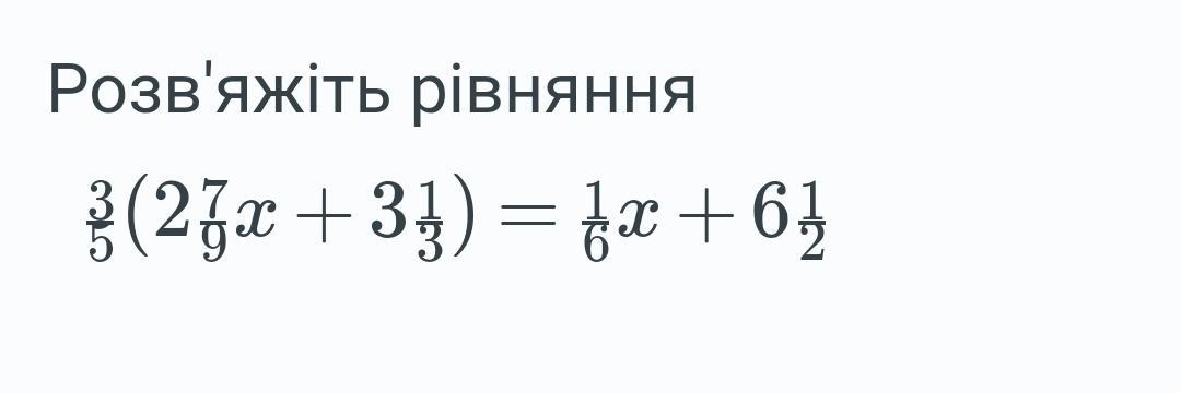 3/5(2 7/9х + 3 1/3) = 1/6х + 6 1/2