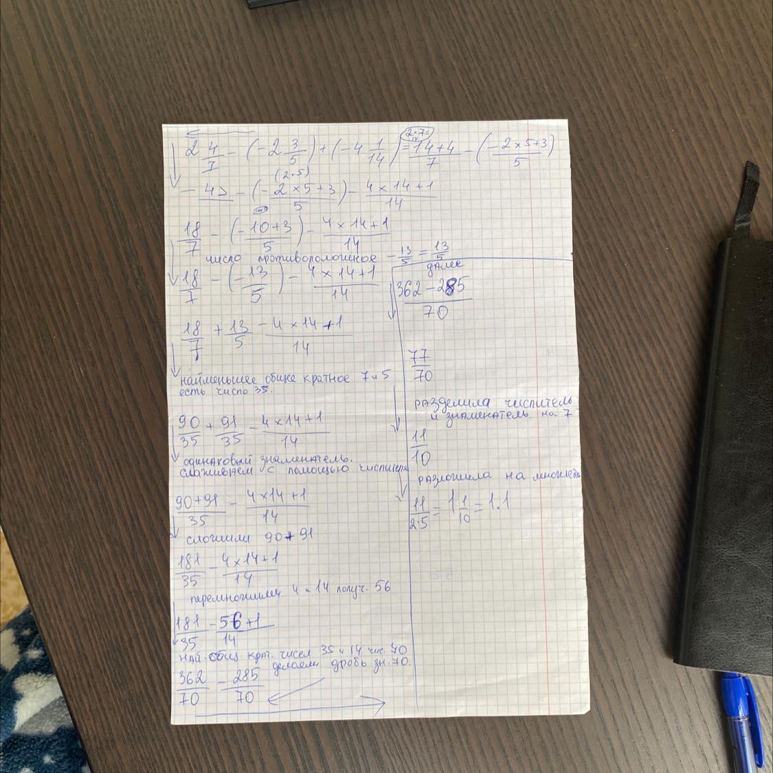 2 4/7 - (-2 3/5) + (-4 1/14)=
