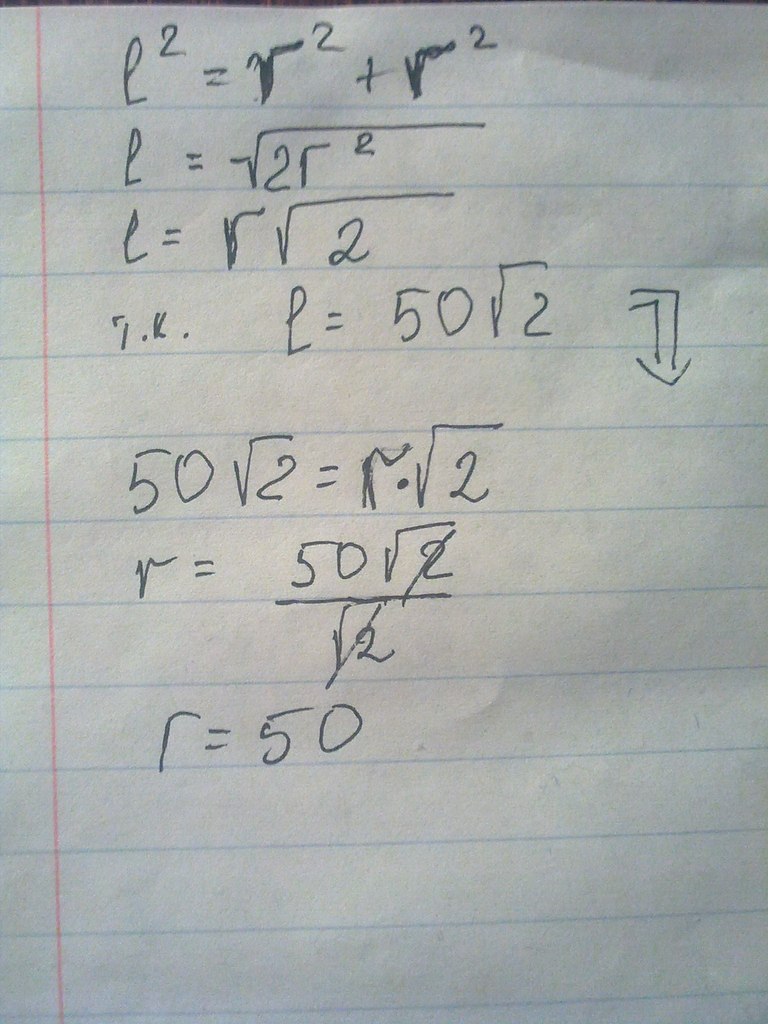 Около конуса описана сфера. Центр сферы совпадает с центром основания конуса. Образующая конуса равна 50*корень из 2. Найдите радиус сферы.