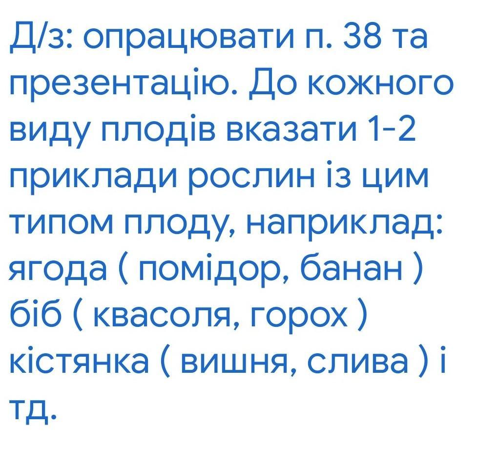 .До кожного виду плодів вказати 1-2 приклади рослин із цим типом плоду, наприклад: ягода ( помідор, банан ) біб ( квасоля, горох) кістянка ( вишня, слива ) і тд.будь ласка допоможіть даю 18 балів більше немає будь ласка допоможіть.