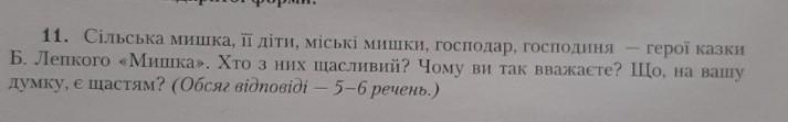 За моїм переконанням, щастя - це стан задоволеності та гармонії з оточуючим світом. У цій казці сільська мишка та її діти щасливі, оскільки живуть в мирі та безпеці на своєму маленькому подвір'ї. Вони можуть насолоджуватись простими радощами життя, такими як харчі та гра з друзями, і не мають потреби у більшому багатстві. Міські мишки та господар з господинею, навпаки, віддаляються від щастя, оскільки перестають бачити значення простих радощів та балансу в житті.