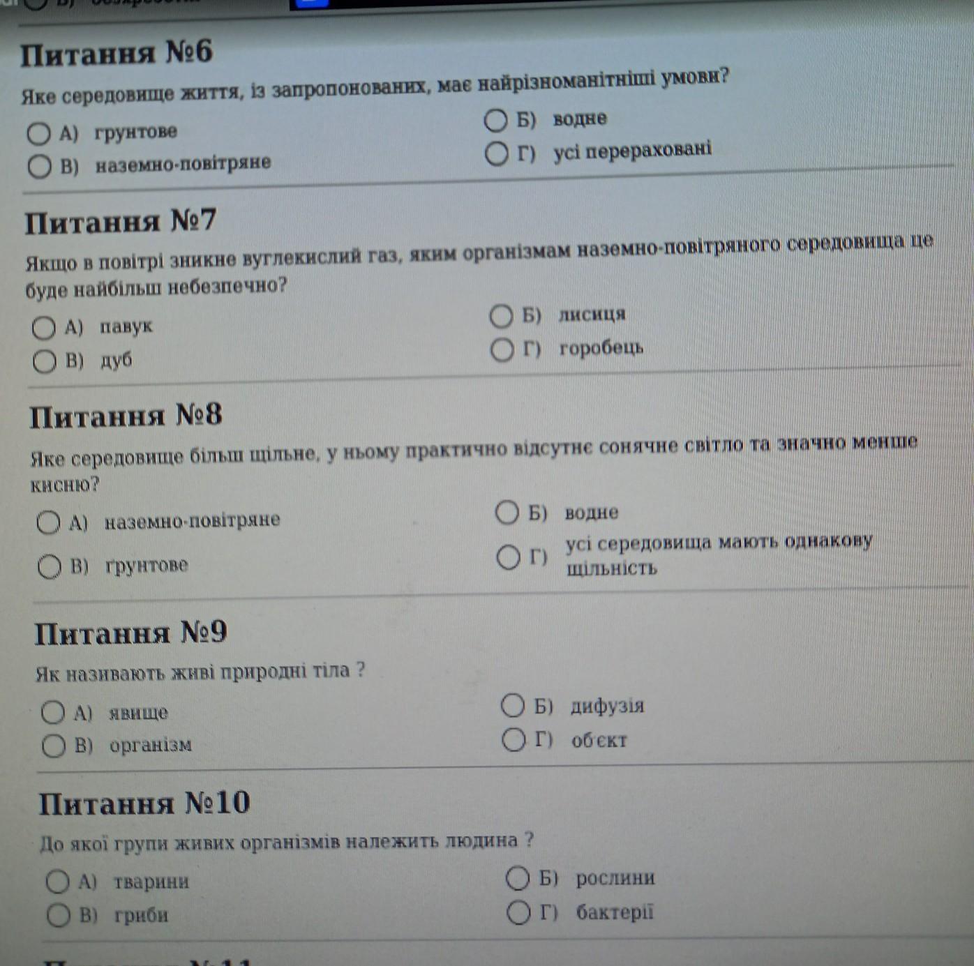 У 8 я сумніваюся над В і Б. У воді присутній кисень, його використовують риби, світло проходить хоч і не глибоко. А ость у землі хіба що якщо вирити тунель потрапить світло/ повітря.