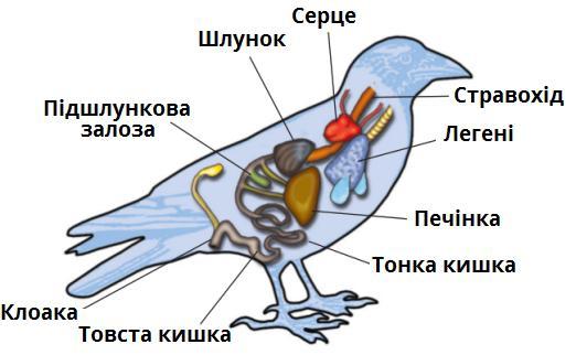 Травна система у птахів є наскрізною. Це означає, що їжа проходить через усі відділи травного тракту - рот, стравохід, шлунок, тонкий і товстий кишечник та виходить з організму через клоаку. Ненаскрізна система передбачає наявність сліпої кишки, якої немає у птахів