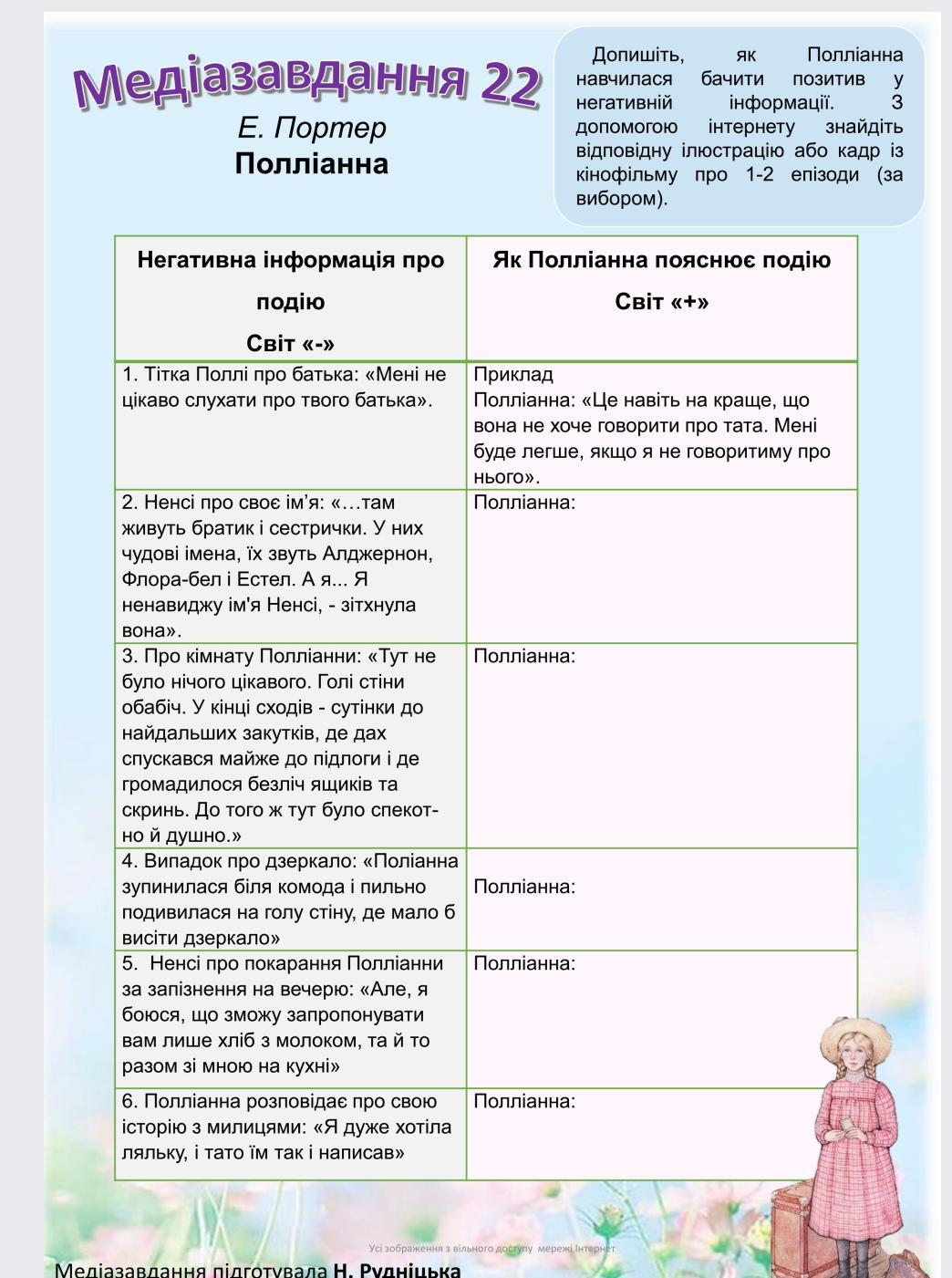 5 вони з якоюсь жінкою грали у гру на куклу а жінка постійно програвала томуі пішла а Поліанна говорила що це така гра де потрібно програвати та радіти