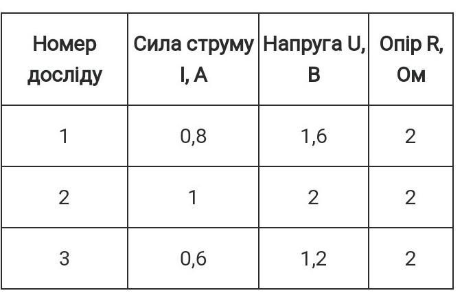 за допомогою амперметра і вольтметра виміряли опір провідника. На основі експериментальних даних можна зробити висновок, що опір провідника не залежить від сили струму в ньому та напруги па його кінцях