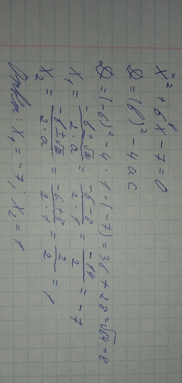 D = (-6)2 - 4 * 1 * 7 = 36 - 28 = 8;