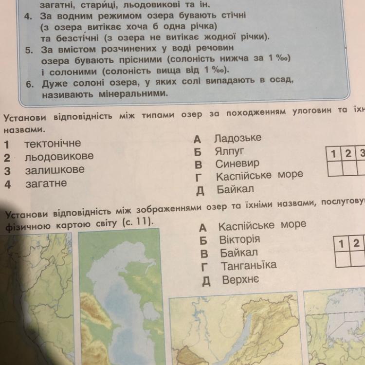 Установи відповідність між типами озер за походженням голови та їхніми назвами пж допоможіть