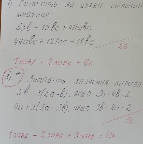 2) 5ab-15bc+40abc = (5a+15c+40ac)b (далі вирішити нереально)