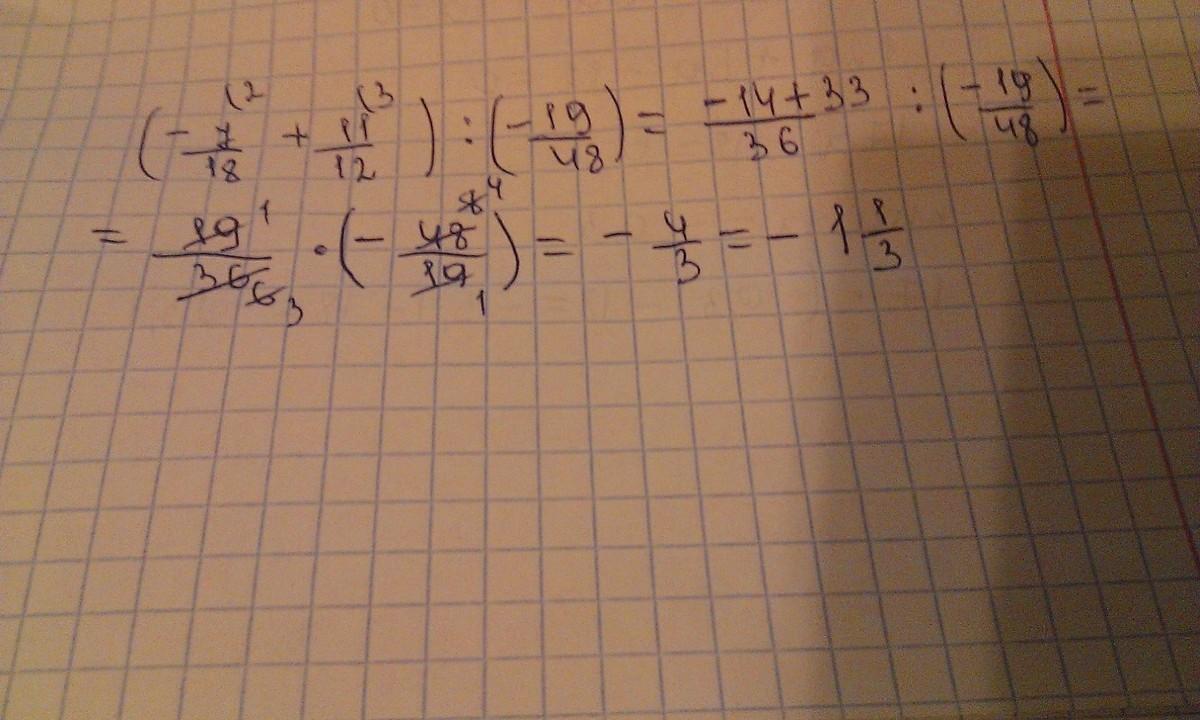 (-7/18+11/12)÷-19/48=(-14+33/36)÷-19/48=