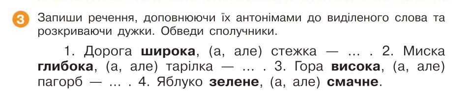 1. _а_ стежка - вузька. 2. _а_ тарілка - -плитка. 3. _а_ пагорб - низький. 4. __але_ смачн_е