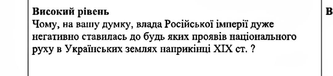 Поможіть) чому на вашу думку, влада Російської імперії дуже негативно ставилась до будь яких проявів національного руху в Українських землях наприкінці 19ст