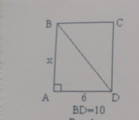 в прямоугольнике при проведении диагонали образуются два равных треугольника, являющиеся прямоугольными, тогда ∆АВД - прямоугольный, ВД=10 - гипотенуза; АВ=х и АД=6 - катеты. Найдём катет АВ по теореме Пифагора: квадрат гипотенузы равен сумме квадратов катетов: ВД²=АВ²+АД² тогда х²+6²=10²; х²=100-36; х²=64 и х=8. Значит АВ=8 см. ну и СД тоже 8 см, и ВС =6 см.