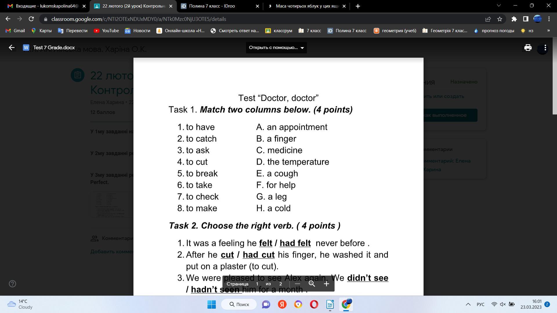 1.Dad ______ (drive) me home after I ____ (fall) into the
