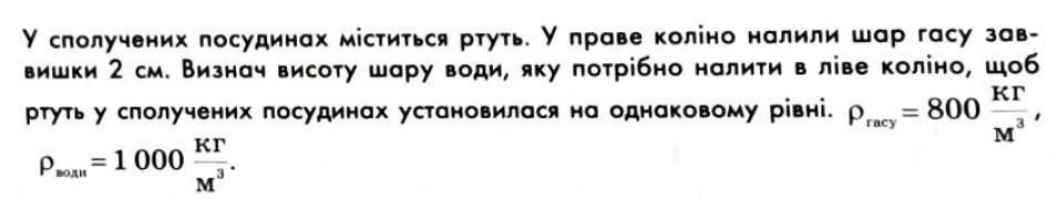 Для того, чтобы уровень ртути был одинаков в обоих коленях, нужно, чтобы давление уровня керосина и воды было одинаковым: