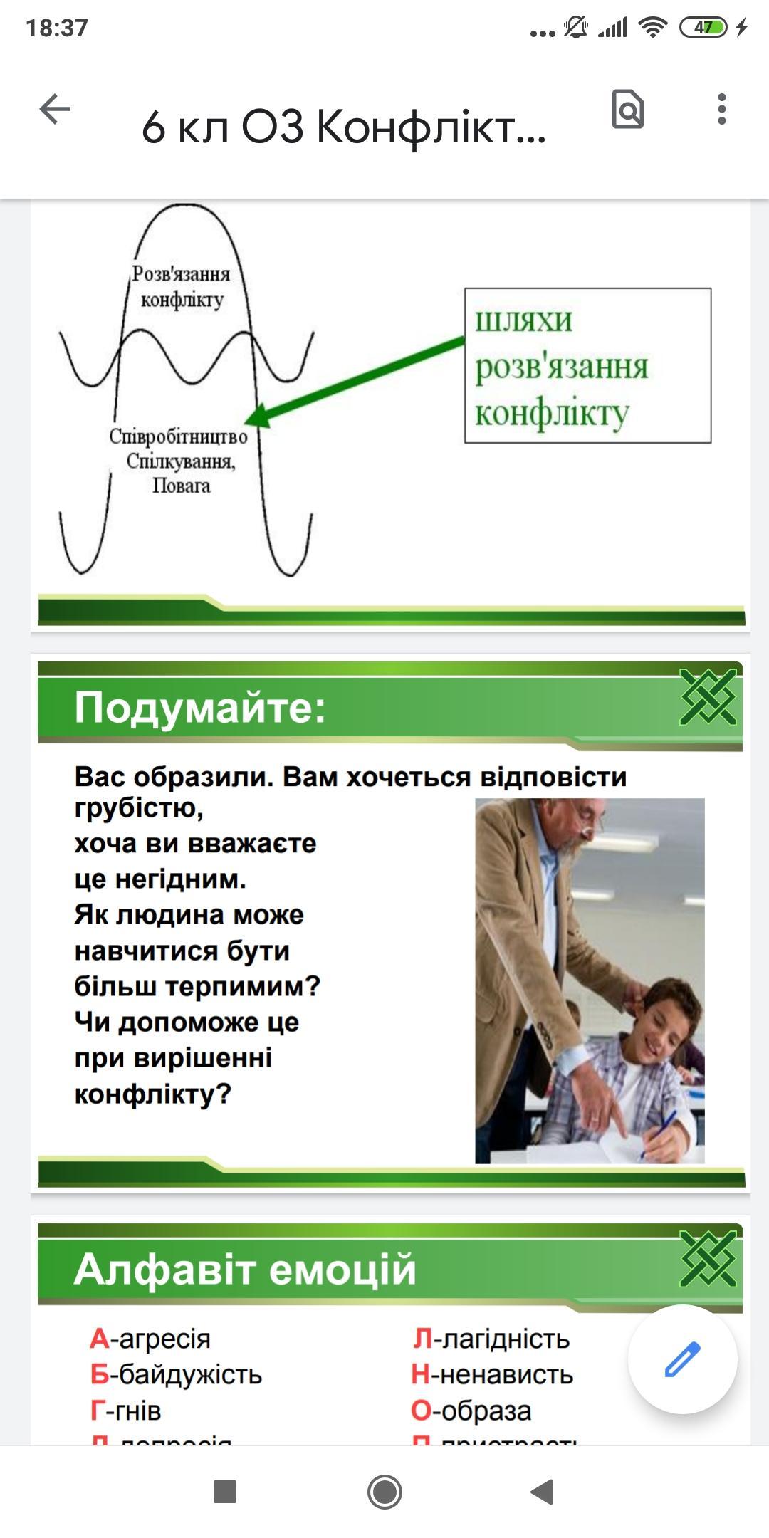 Треба себе контролювати й пом‘ятати мету свого контролю й якщо питатися навчити себе бути більш спокійним то через час все вийде. Так це допоможемо вирішенні конфлікту.