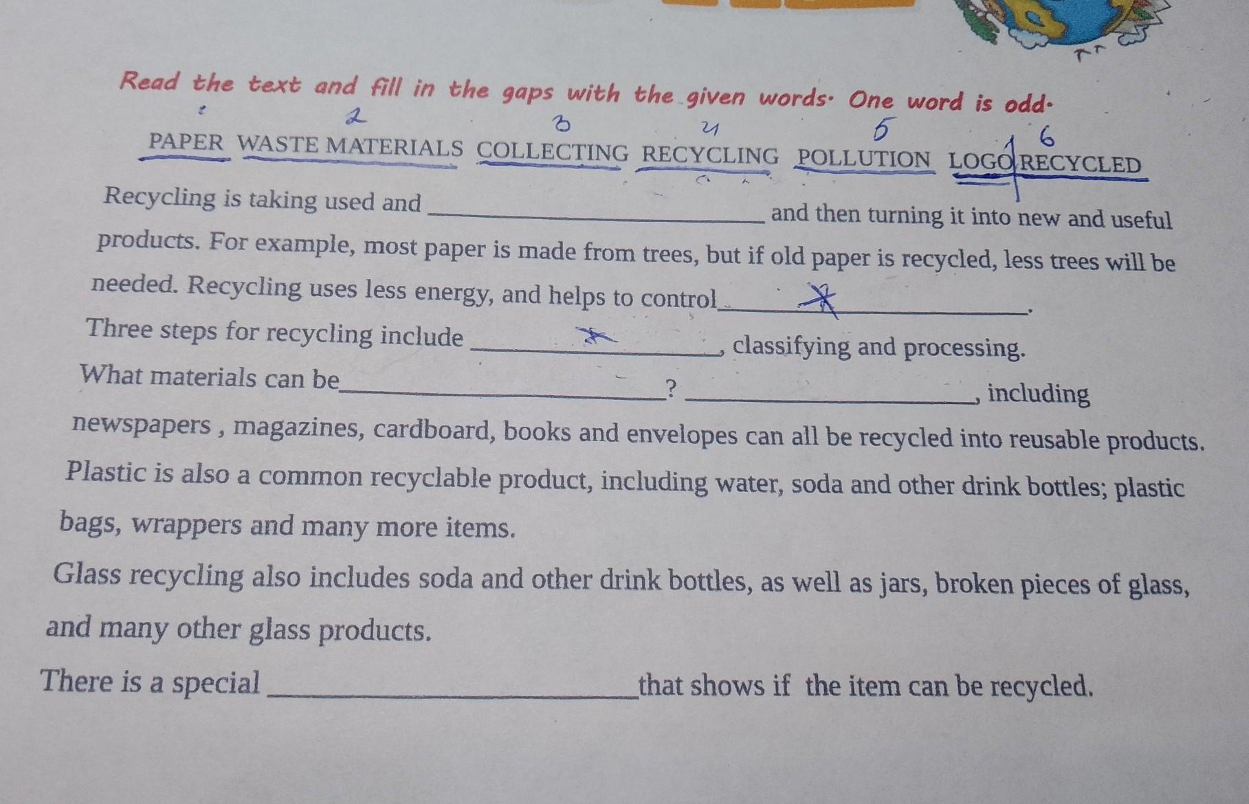 Вставити слова, те що підкреслено разом - один вислів. LOGO і RECYCLED два різні!! Одне зайве