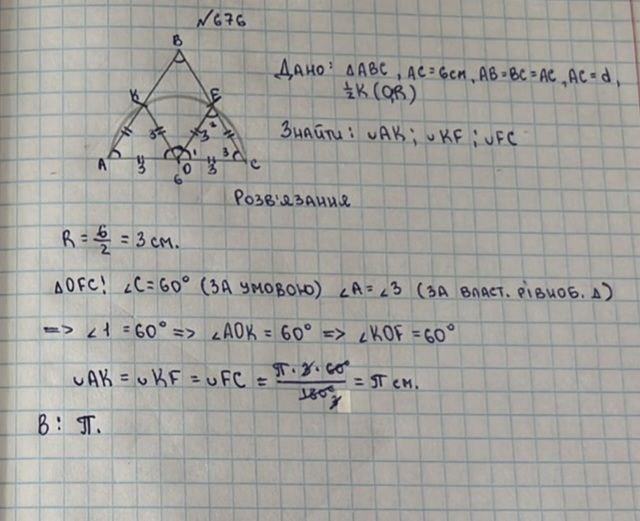 На стороні АС, що дорівнює 6 см, рівностороннього трикутника АВС, як на діаметрі, побудовано півколо. Знайдіть довжини дуг, на які це півколо ділять сторони АВ і ВС.