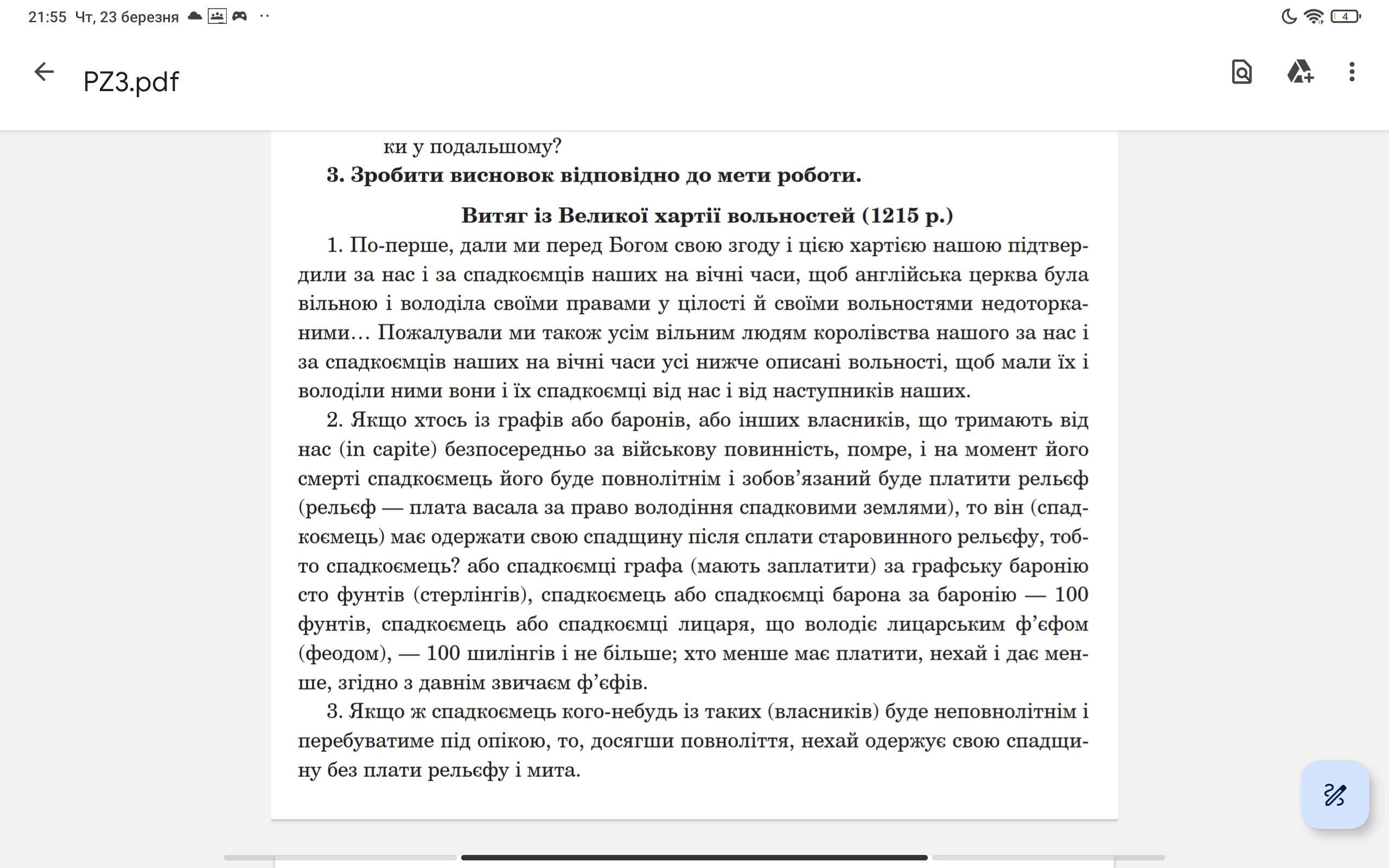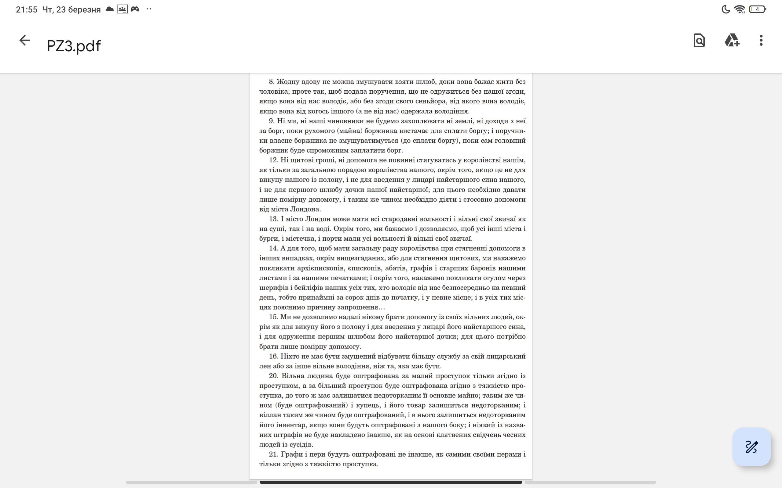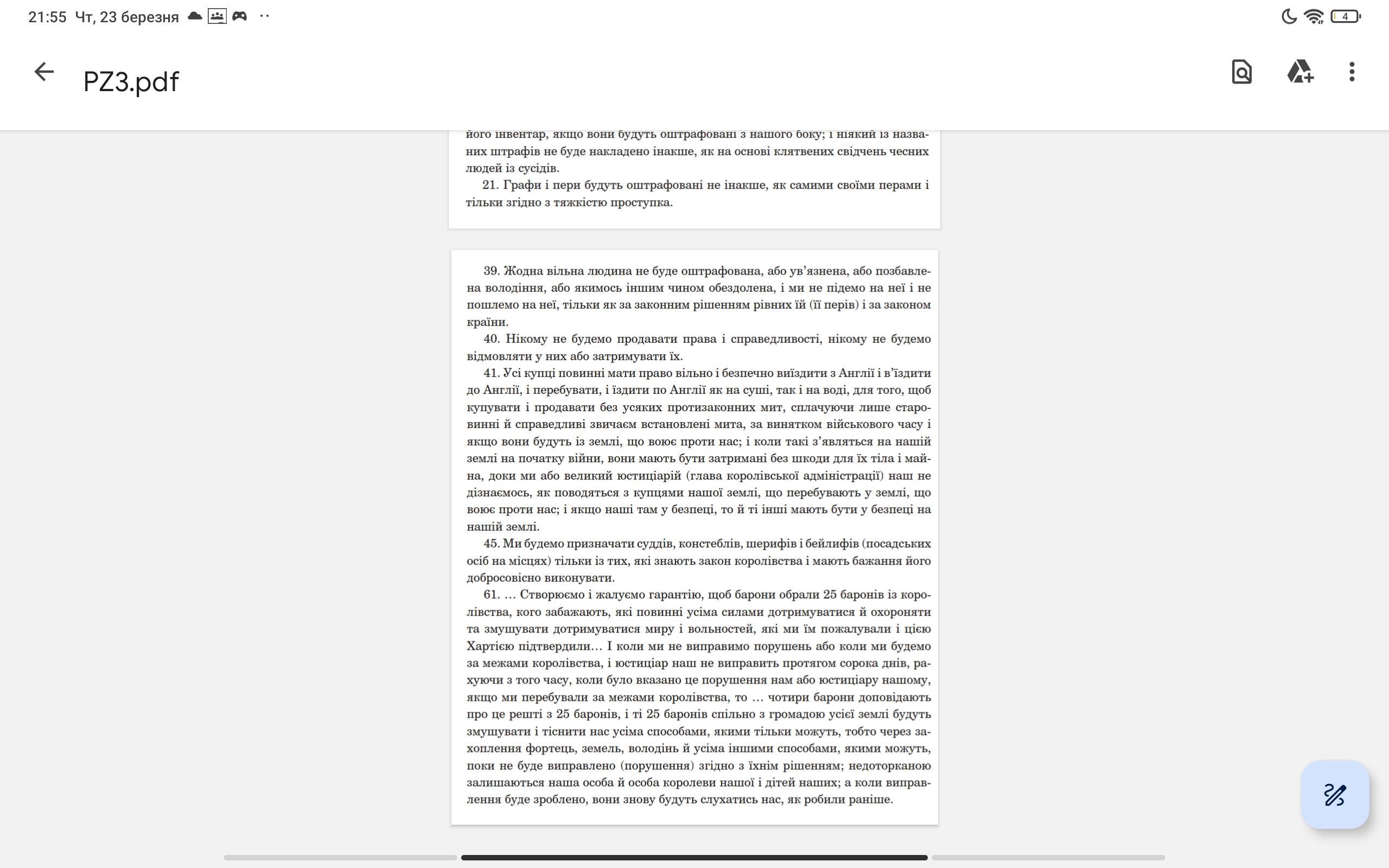 Велика хартія во́льностей заснована 1215 року або Маґна Карта — перша «неписана» конституція Англії. Велика хартія вольностей вважається першим юридичним документом, у якому закладено основи концепції прав людини, створено передумови для подальшого утвердження свободи і верховенства права.
