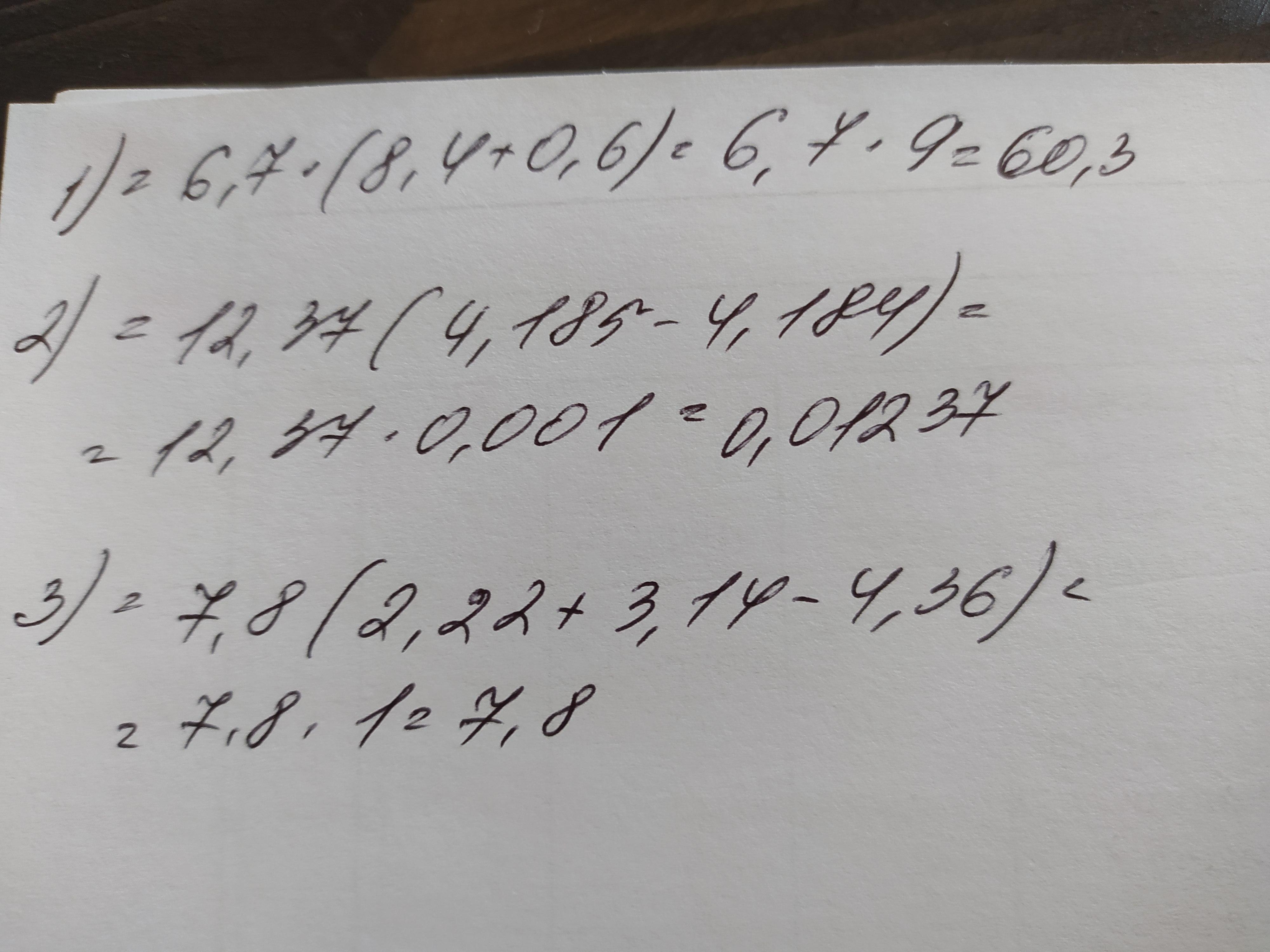 Вычислить: 1)6,7*8.4+6.7*0.6: