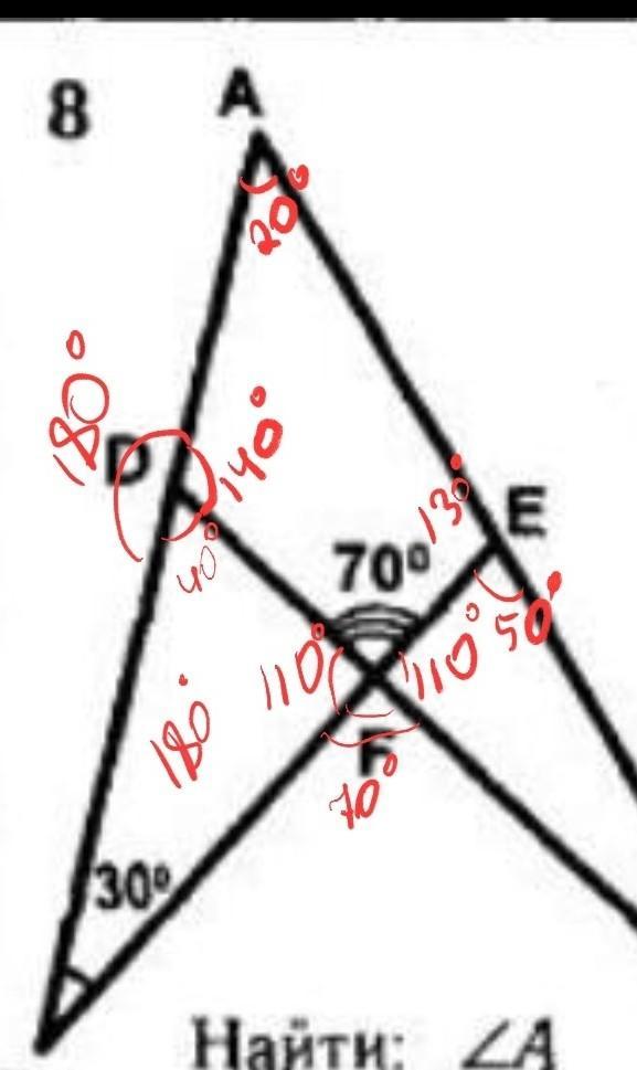 сумма градусов углов треугольника равно 180°, 180-(30+110)=40°