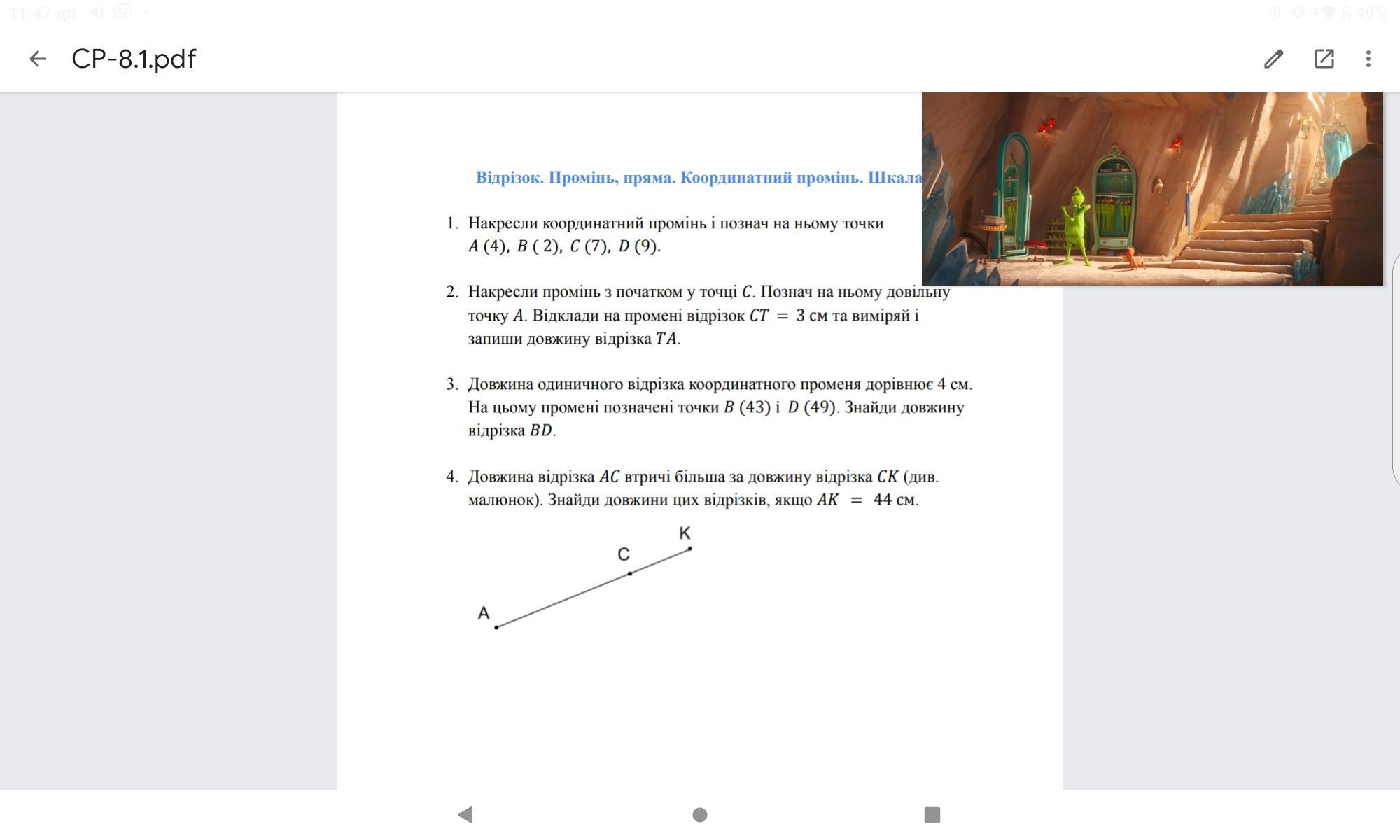 4 задание: 1)44(см) : 4(потому что в суме линия поделена на 4 части) = 11