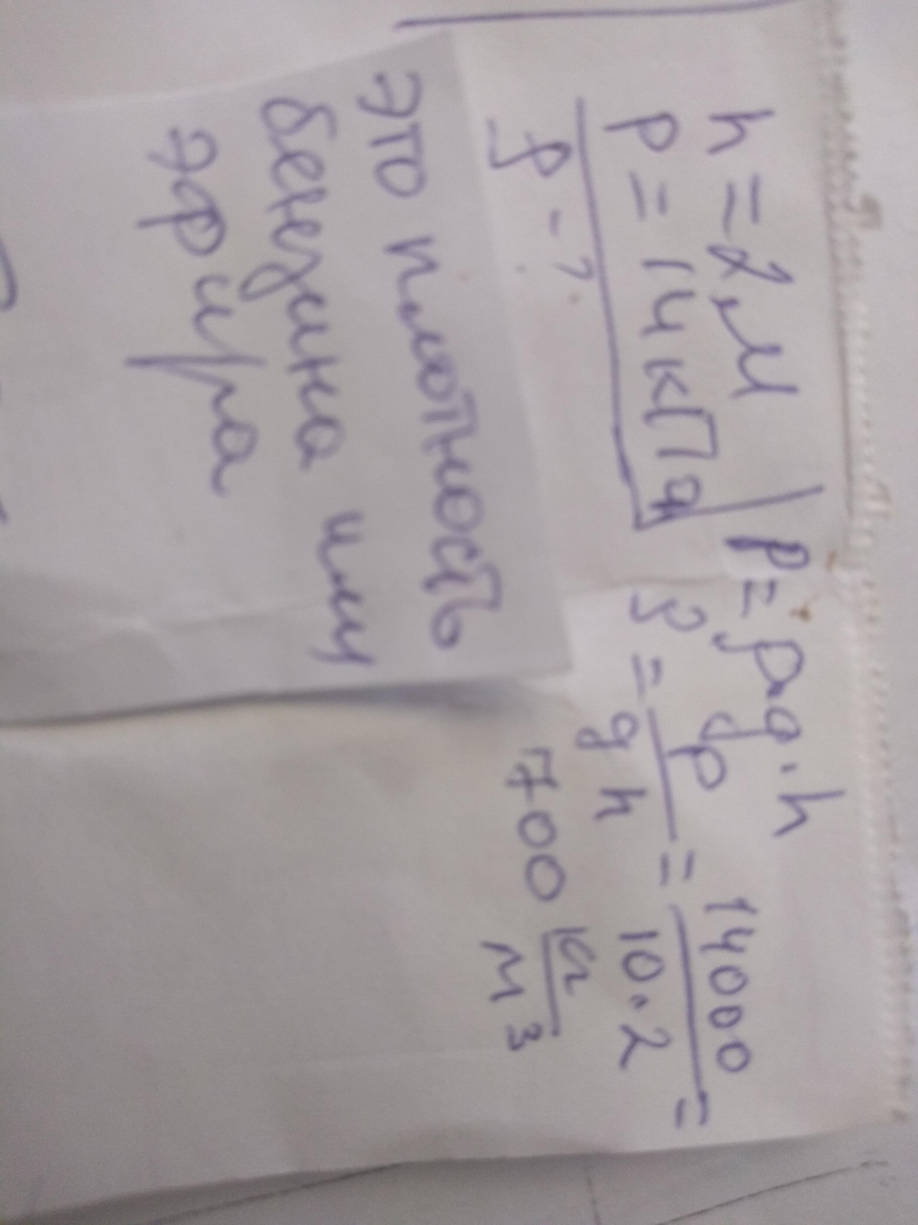 У бочці, яка наповнена до рівня 2 м, знаходиться невідома рідина. Тиск на дно бочки становить 14 кПа. Знайдіть густину цієї рідини. (Дію атмосферного тиску не враховуйте)