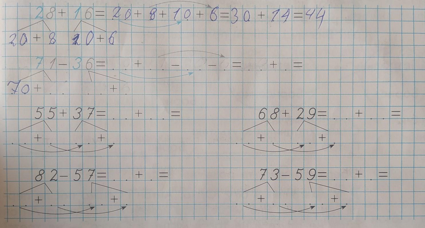2)50 + 5 30 +7 50 + 30 = 70 + 5 +7 =82